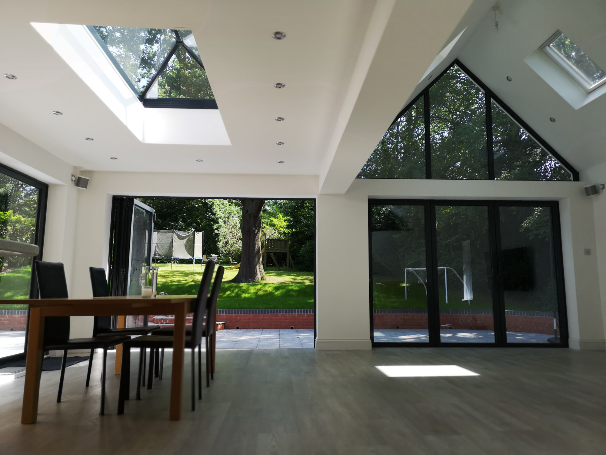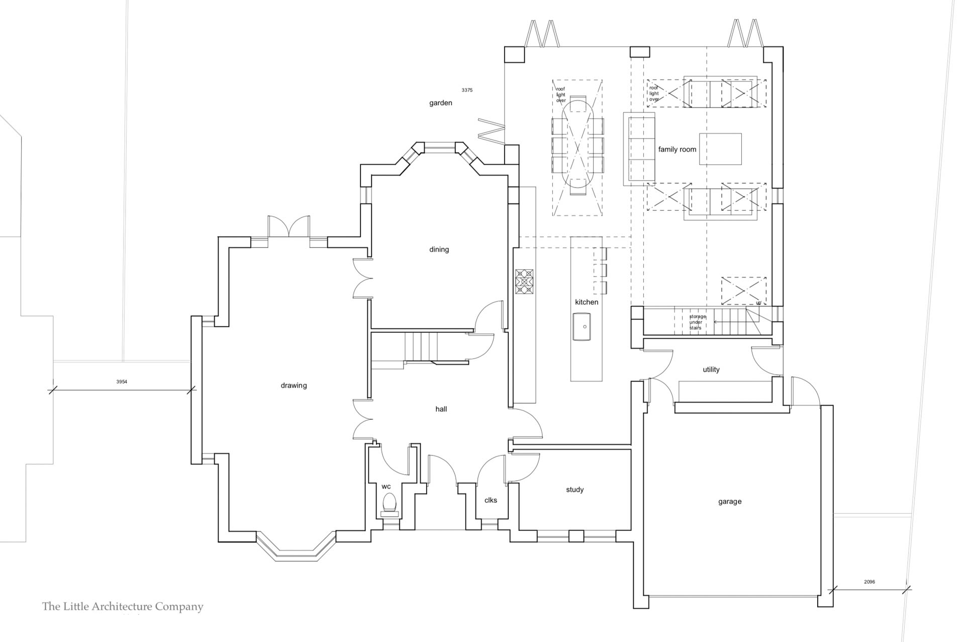 This 20-year-old detached house is located in a quiet cul-de-sac a short walk from the centre of Harborne. The client asked us to create a larger kitchen – family space with an improved relationship to the garden. Our design options suggested that a mezzanine could also be accommodated above the existing utility and garage, accessed from the new family room and providing further entertainment space.