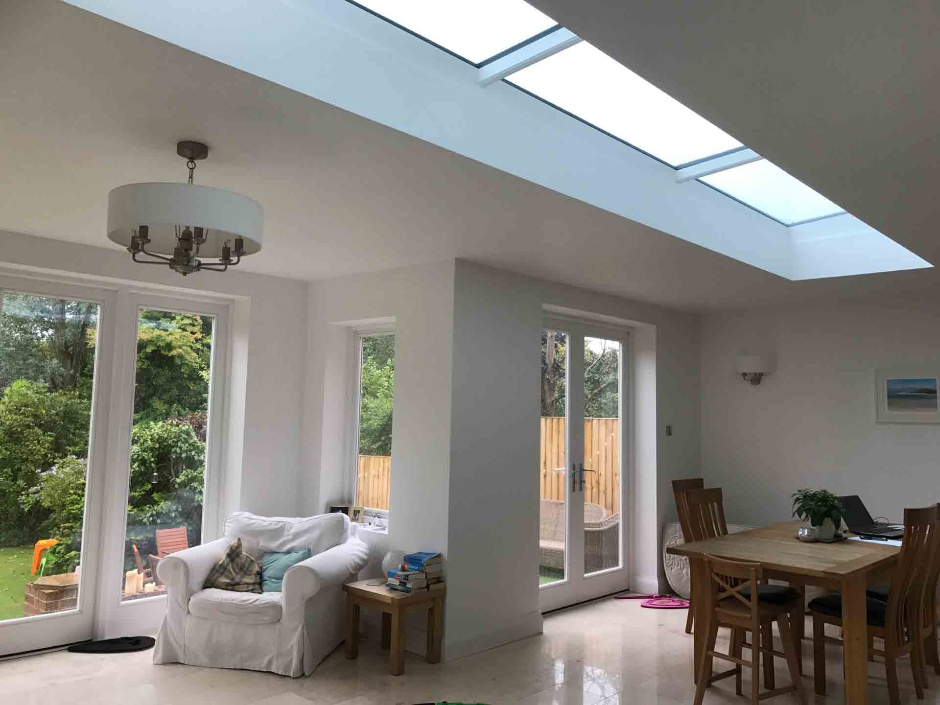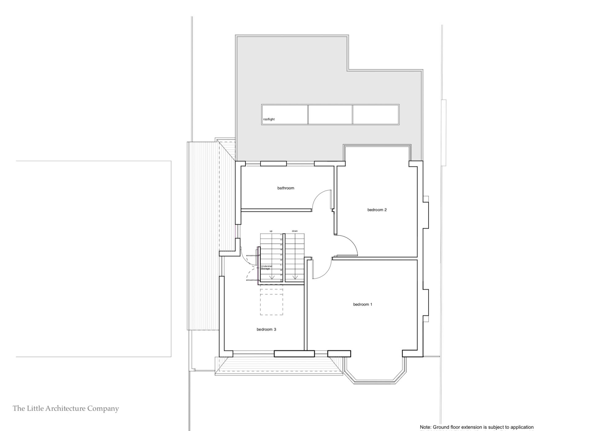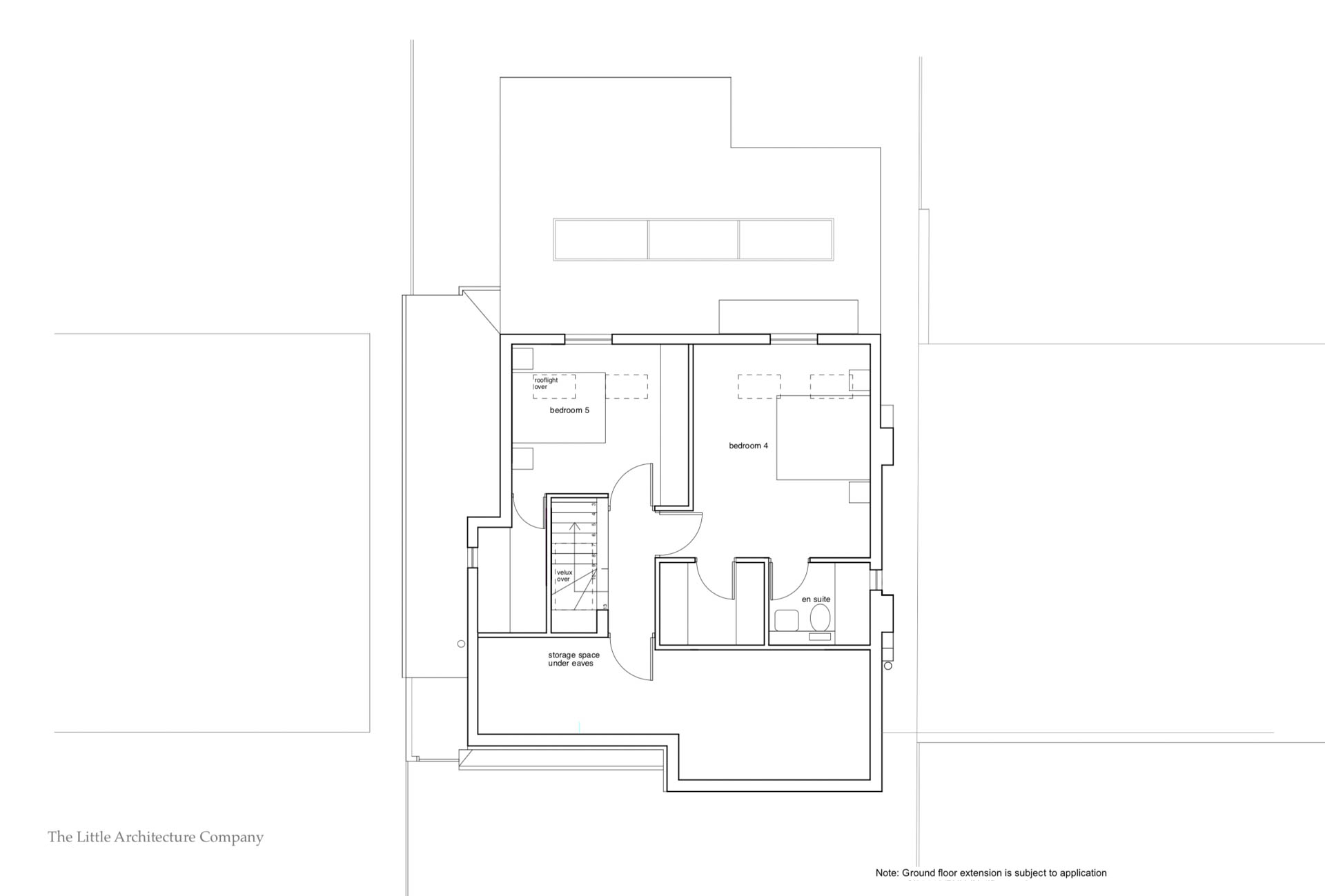 A sensitive hip to gable roof conversion with dormer windows overlooking the garden allowed the creation of a generous master bedroom suite with vaulted ceiling, shower room, study and eaves storage.