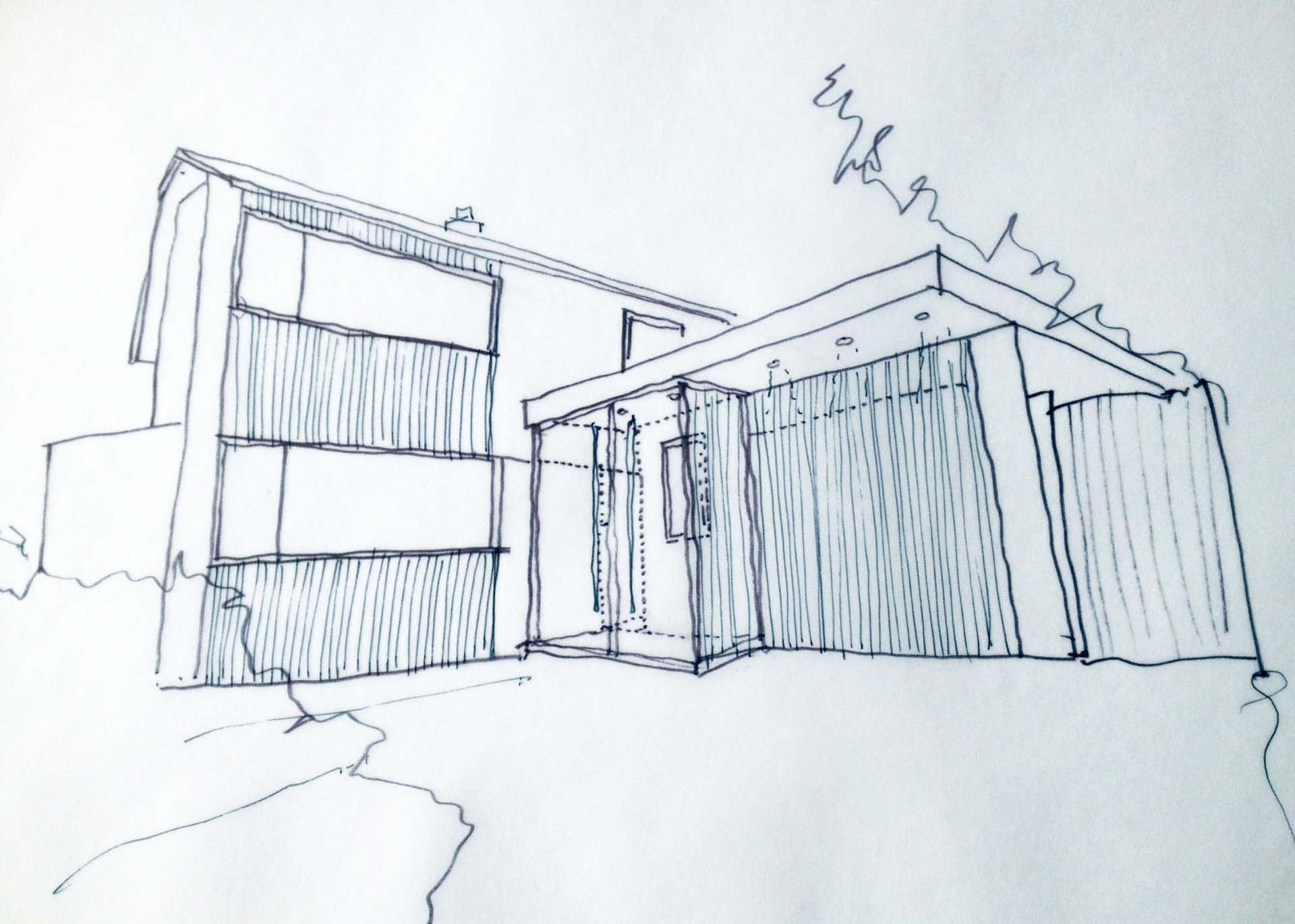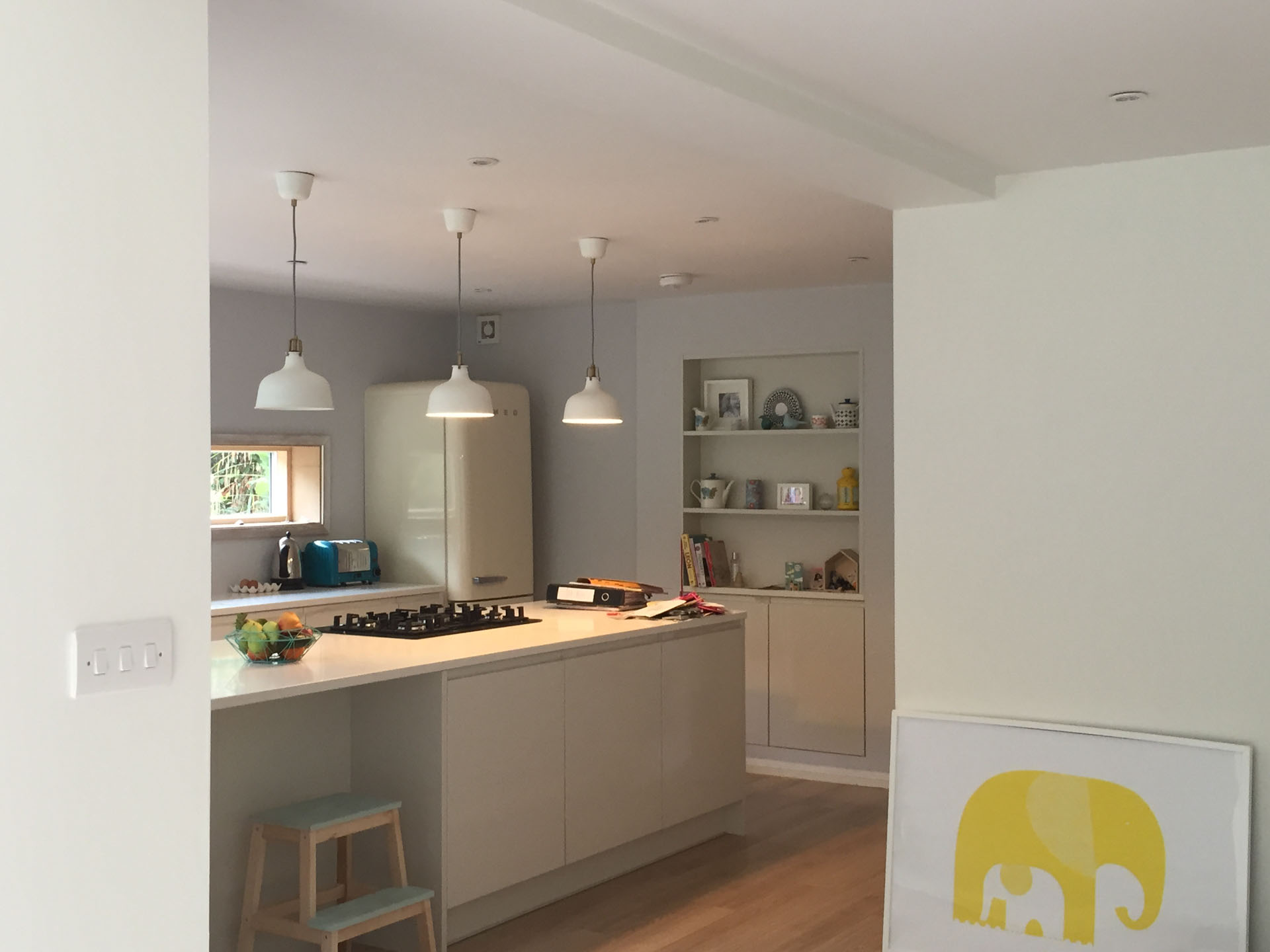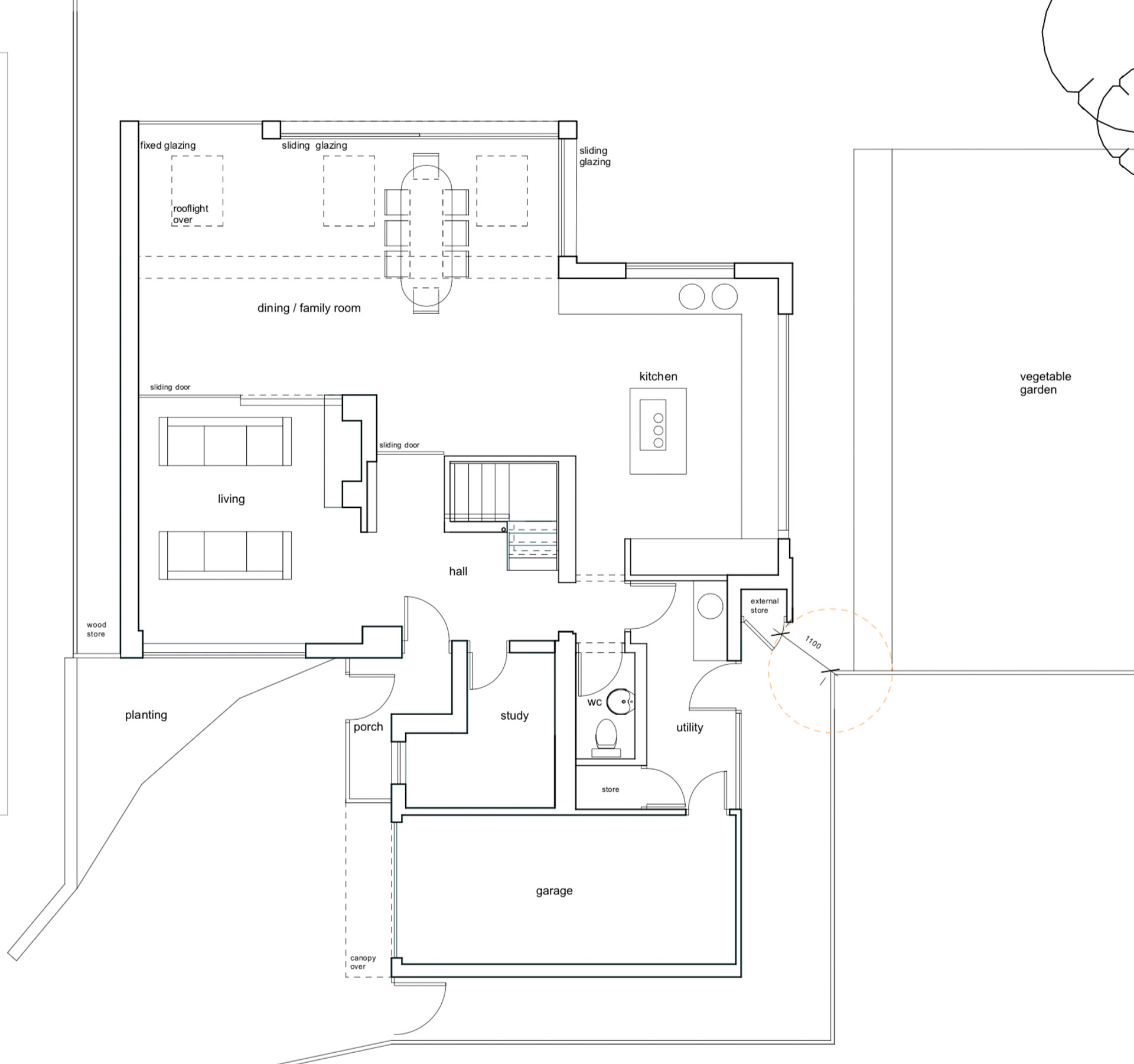 A 1970’s house set at the end of a quiet cul-de-sac with boundaries onto the Chiltern Railway Line and a delightful nature reserve. At ground floor we provided a generous family kitchen-family room with large format sliding doors and picture window linking the space to the garden, and linear windows framing views onto the vegetable patch adjacent to the railway.