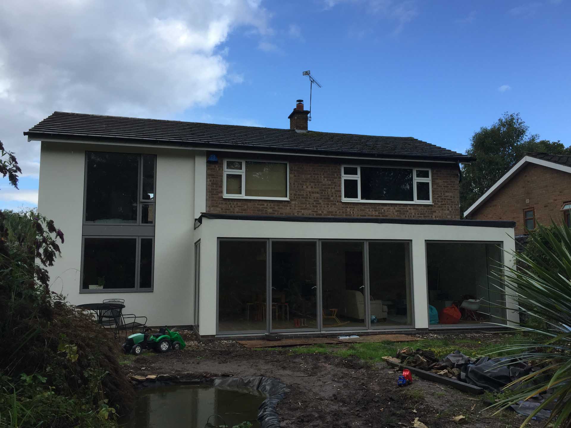 At first floor the rendered extension continues above the kitchen providing an additional master bedroom and en suite with views over the garden and nature reserve beyond.